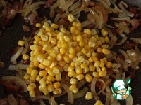 Когда лук станет прозрачным, добавить кукурузу, перемешать. |