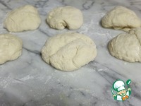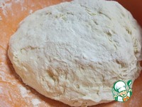 Подошедшее тесто обминаем. Из указанного количества ингредиентов получится 10 лепешек. Делим на 10 частей. Я разделила на шесть, часть теста оставила для мясного пирога |