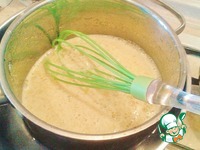 Вливаем остальное молоко и взбиваем еще раз. Тесто должно быть текучим, как ряженка. Накрываем пленкой и отставляем в сторону - оно должно настояться минут 30-40 |