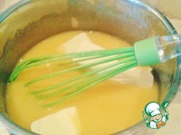 Добавляем в горячий еще крем сливочное масло и интенсивно перемешиваем, чтобы масло растопилось и крем стал гладким |