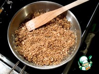 2. Приготовим сладкую смесь «крем-брюле» с семечками подсолнечника: очищенные семена подсолнечника перемолоть в кофемолке или раскрошить в ступке в крошку, но не очень мелкую. Выложить в сковороду все составляющие сладкой смеси: покрошенные семечки, манную крупу, сухое молоко, сахар, масло сливочное, ванилин. Все ингредиенты перемешать и поставить на плиту. При постоянном помешивании нагреть смесь на среднем огне до растворения сливочного масла и сахара. Перевести плиту на слабый огонь и помешивать смесь до образования золотисто-кремового цвета. При достижении золотистого оттенка смесь убрать с плиты для остывания. |