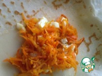 3. На сковороде разогреть слегка масло, положить морковку, сразу посолить по вкусу и посыпать черным перчиком - это обязательное условие для отличного результата, перемешать и накрыть крышкой. Морковка даст немного сока, но этого будет достаточно, чтобы она не жарилась, а тушилась в нем под крышкой до готовности, для чего понадобится около 20 минут на медленном огне, только не забывайте перемешать несколько раз для равномерного приготовления. За это время нужно сварить вкрутую яйца, почистить и нарубить мелкими кубиками. |