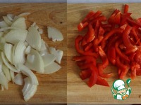 Болгарский перец и репчатый лук нарезать соломкой. |