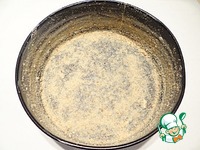 Круглую разъемную форму диаметром 20 см смазываю сливочным маслом и посыпаю панировочными сухарями. |