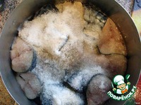 Берем "посудину", режем рыбку на порционные кусочки, складываем в емкость. |