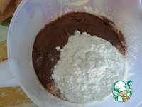 Затем добавить остальные ингредиенты:масло растительное, молоко, какао, муку, ванильный сахар и соду. |