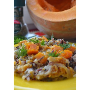 Описание: Без особого труда можно приготовить ризотто по этому рецепту. Рис и тыква прекрасно гармонируют и создают в сочетании с другими продуктами очень яркое и вкусное блюдо.
