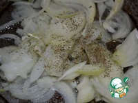 Вторую луковицу очистите и нарежьте крупными дольками. |