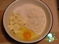 Маргарин натереть на терке, добавить яйцо, муку, сахар, соль |