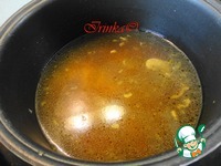 Готовим до сигнала. После сигнала оставляем суп настояться на 30 минут на режиме Подогрев. |