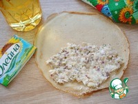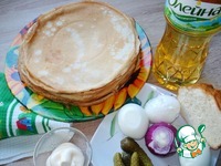 Блинчики я готовлю вот по этому рецепту http://www.povarenok .ru/recipes/show/102 355/?direct=1, их примерно нам понадобится 12 штук. |