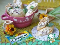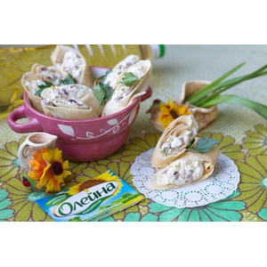 Заворачиваем в рулет. Также поступаем и с остальными. Отправляем в холодильник на полчаса. |