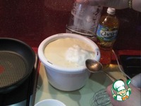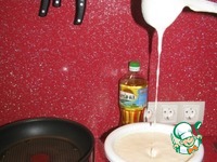 Взбиваем белки до густой пены, перемешиваем, добавляем 3 ст. ложки растительного масла "Олейна" и приступаем к выпечке блинов. |