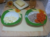 Теперь начинка: Печень трески полностью освобождаем от масла, разминаем вилкой или в блендере (измельчителе), добавляем тертую морковь и тертые яйца. Все смешиваем, начинка готова! |