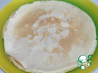 Затем снова начинка и блинчики в противоположные углы, и так до самого верха формы. |