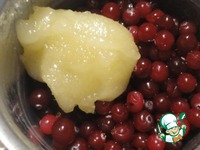А в это время готовим кисло-сладкий клюквенный соус. С отлитого «сока» от утки снимаем сверху жир. Его будет примерно половина от «сока». |