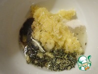 Соединяем вместе чеснок, сушеный розмарин, тимьян, свежемолотый черный перец, 1,5 ч. л. соли. |