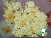 В процессе жарки перемешивать, чтобы получились отдельные кусочки. Извлечь яйца из сковороды |