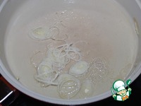 Разогреть масло, посолить и немного зажарить лук-порей |