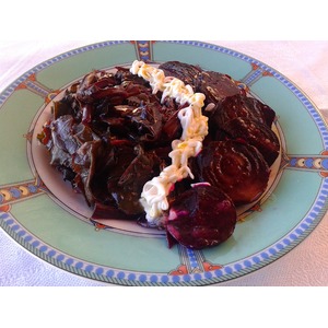 Описание: Пикантный ароматный салат, в котором используем "и вершки, и корешки".. Запеченная свекла, ароматные травы, апельсиновый дрессинг... Все просто и вкусно!