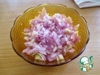 Положить лук и слегка обжарить его, постоянно перемешивая. |