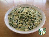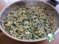 Шпинат порезать на средние части и добавить к луку. Обжарить в течении 3-х минут, посолить, поперчить по вкусу. |