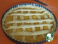 В полученную основу вылить лимонный крем, из остатков теста сделать решетку. |