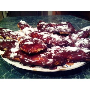 Размягченное сливочное масло (или маргарин) взбиваем с сахарной пудрой. Добавляем смешанную с разрыхлителем муку, ванильный сахар и яйцо. Замешиваем тесто и ставим в холодильник на 30 минут. Противень застелить пергаментной бумагой и выкладывать наше печенье в форме овала длиной где-то 10 см (во время запекания тесто увеличится). Выпекаем в разогретой до 180°С духовки около 15 минут. Даем немного остыть. Поливаем шоколадным кремом (вы можете использовать любой шоколадный крем, который вам нравится) и сверху посыпать сахарной пудрой. Приятного аппетита!