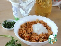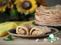 Можно фаршировать блинчики или же приготовить более жидкий соус и макать в него блины. Получается вкусное и сытное блюдо. |