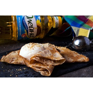 Смазать антипригарную сковороду растительным маслом. Выпекать блины на среднем огне по 1,5-2 минуты с каждой стороны. |