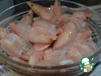 Замороженным креветкам дать слегка оттаять. |