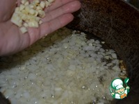 Обжарить на оливовом масле лук с чесноком. |