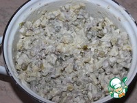 Добавляем зеленый горошек, всё перемешиваем и заправляем майонезом |