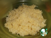 Твердый сыр также натираем на мелкой терке. Добавляем чеснок пропущеный через пресс (или тоже натертый на терке). |