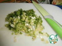 Порезаный мелко зеленый лук также отправляем к нашей смеси. |