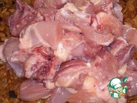 Нарезаем курицу небольшими кусками и добавляем их в сковороду. Обжариваем всё в течение 5 минут, постоянно перемешивая, чтобы курица имела одинаковый цвет со всех сторон. |