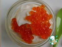Выложите соус в посуду в которой будете подавать, сверху выложите икру. Можно использовать любую икру смешав её с соусом. |