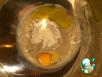 Далее добавляем пшеничную муку и замешиваем тесто. После убираем его в пакет и в холодильник на 30 минут. |