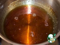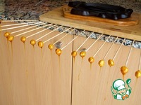 11. Положить тяжелую доску на край рабочей кухонной поверхности, на пол поставить большие противни. Обмакнуть каждый орешек на палочке в карамель, дать лишней карамели чуть стечь и закрепить конец палочки под доской так, чтобы карамель стекала на противни. Орех должен быть покрыт карамелью полностью. Повторить с оставшимися орехами. Ставьте палочки под доску на достаточном расстоянии, чтобы орехи в карамели, не касались друг друга, иначе они слипнутся. Оставить орехи так на 15-20 минут, чтобы карамель полностью затвердела, ножницами обрезать карамельные нити до желаемой длинны, аккуратно снять с палочек и установить на торт, покрытый глазурью. Если вы не очень хорошо знакомы с горячей карамелью, стоит держать на подхвате миску с очень холодной водой на случай, если вы обожжете пальцы. Кроме того, если вы все же обожгли пальцы горячей карамелью, ни в коем случае не облизывайте их, иначе вы обожжете и губы и язык. |