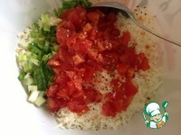 Чеснок пропустить через пресс. Мелким кубиком нарезать помидор и вместе с соком добавить к сулугуни. Добавить масло и перчик чили. Аккуратно, но тщательно перемешать начинку |