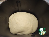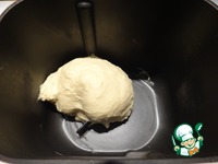 Помещаю ведерко в хлебопечку и включаю режим замеса теста. Даю тесту увеличиться в объеме примерно в 2-3 раза. |