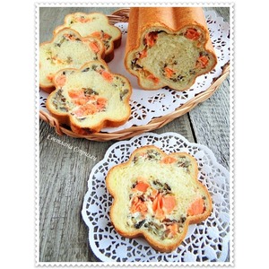 Описание: Предлагаю приготовить рулет из дрожжевого теста с начинкой из лосося, дикого риса и твердого сыра. Решила опять применить свою любимую китайскую форму для выпечки. Так как форма толстостенная и плотно закрывается, выпечка получается с толстой, но хрустящей корочкой, а мякиш воздушным.
