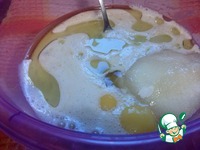 Дрожжи разводим в 0,5 стакана теплой воды, с 1 ч. л сахара и щепоткой муки. Оставляем в теплом месте на 10 мин до появления пенной шапки. |