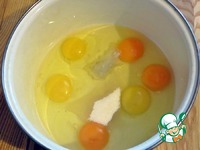 Для начала приготовим тесто для любимых блинчиков. У нас в семье - это блины на молоке. Яйца, сахар и соль - немного взбиваем. |