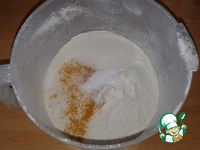 В миску просеять муку, добавить сахар и куркуму. Перемешать |