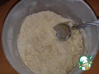 Влить растительное масло и снова перемешать. Получатся комочки |