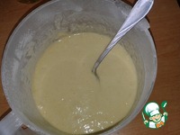 Влить воду и снова хорошенько перемешать венчиком. Добавить соду, еще раз перемешать |