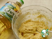 В чашке смешать муку с сахаром, яйцами, растительным маслом. |
