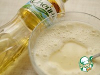 Тонкой струйкой влить молоко, постоянно перемешивая тесто венчиком. |