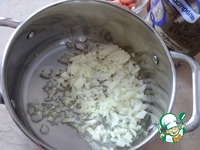 В кастрюле (2,5 - 3 л) разогрейте растительное масло и пассеруйте мелко нарезанный лук до прозрачности. |